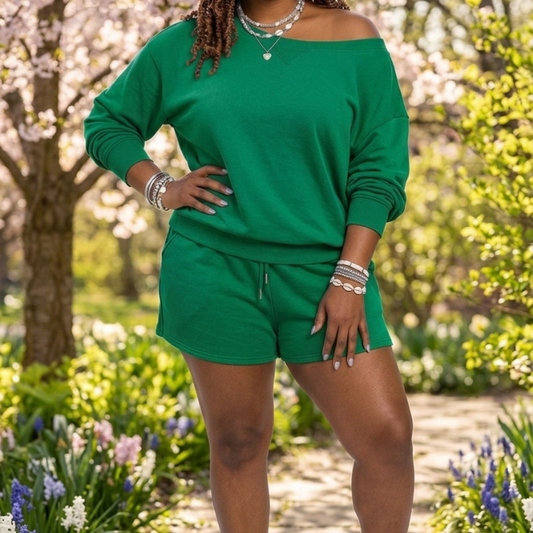 FLEECED BOATNECK 2 PIECE SHORTSET